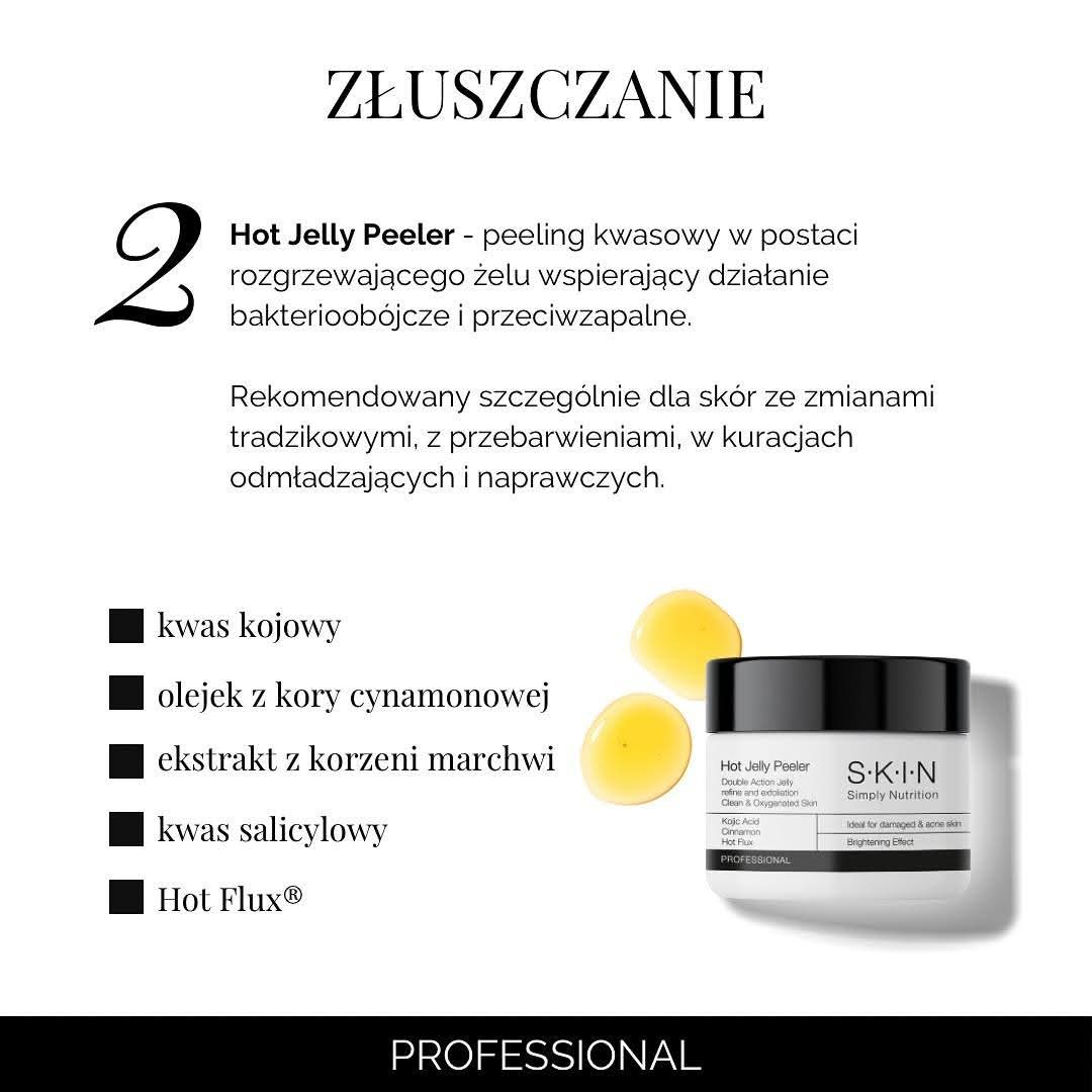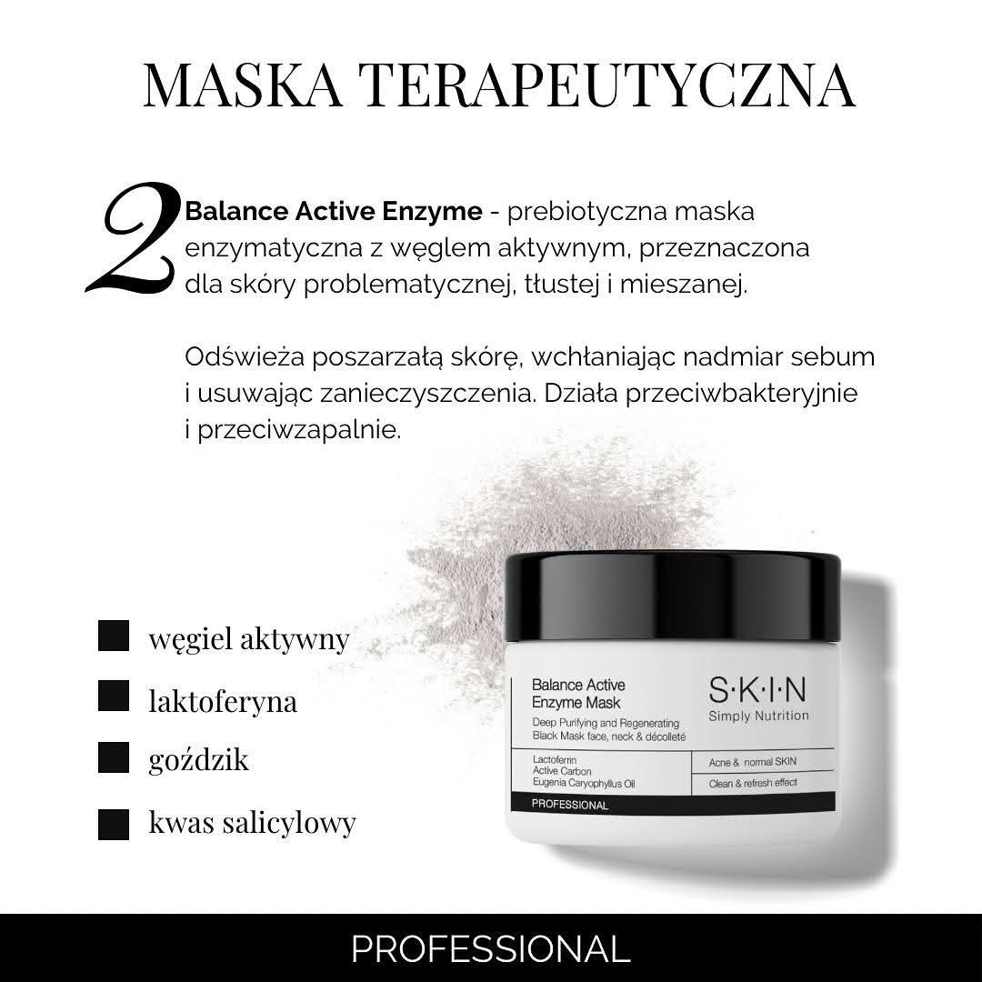 Zbieg przeznaczony dla skór zanieczyszczonych z nawracającymi problemami trądzikowymi, łojotokiem, rozszerzonymi porami i przebarwieniami pozapalnymi. Zabieg polecany jest również dla skóry dojrzałej z oznakami fotostarzenia. Reguluje pracę gruczołów łojowych zmniejszając łojotok, tworzenie zaskórników, krost i zmian zapalnych. Aktywne składniki zawarte w zabiegu takie jak Inulina, alfa Glukan oraz olisacharydy o właściwościach nawilżających i probiotycznych przyspieszają procesy gojenia skóry. Wyrównuje koloryt skóry i widocznie poprawia jej strukturę, jednocześnie wzmacniając barierę ochronną.